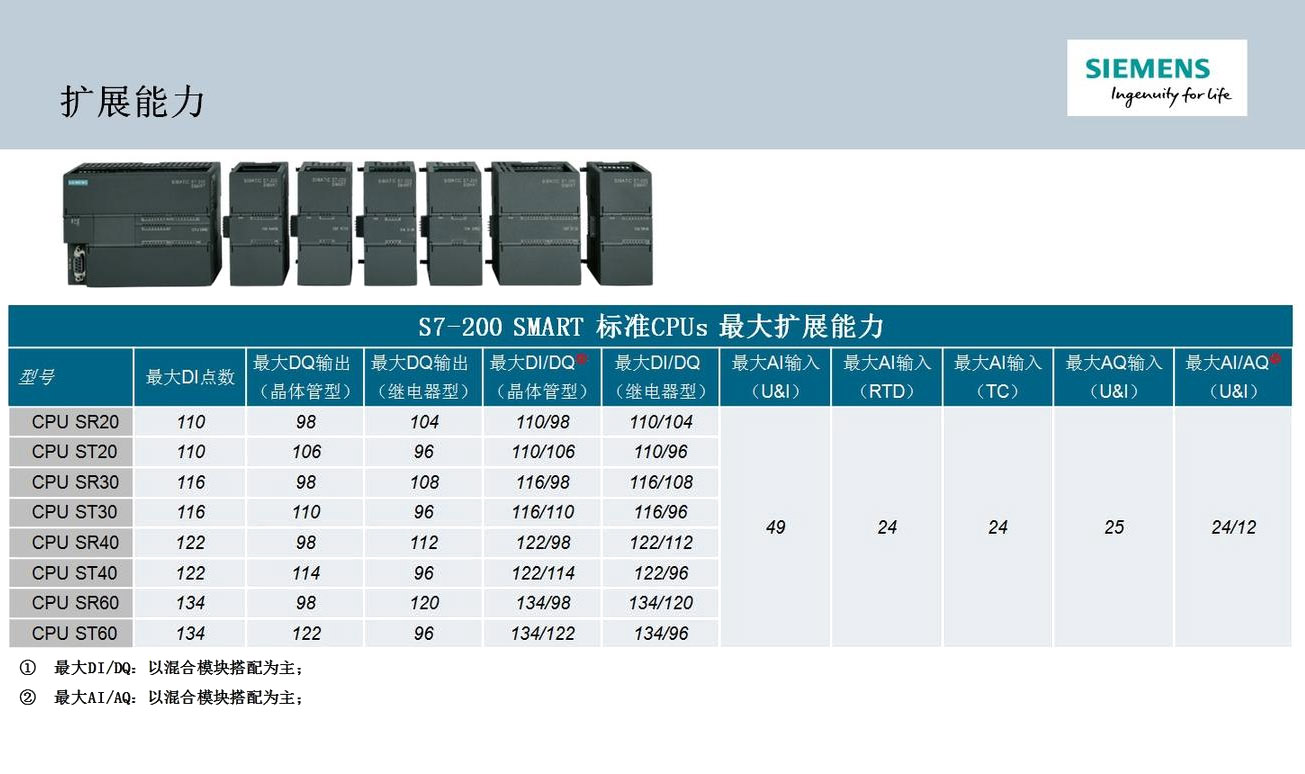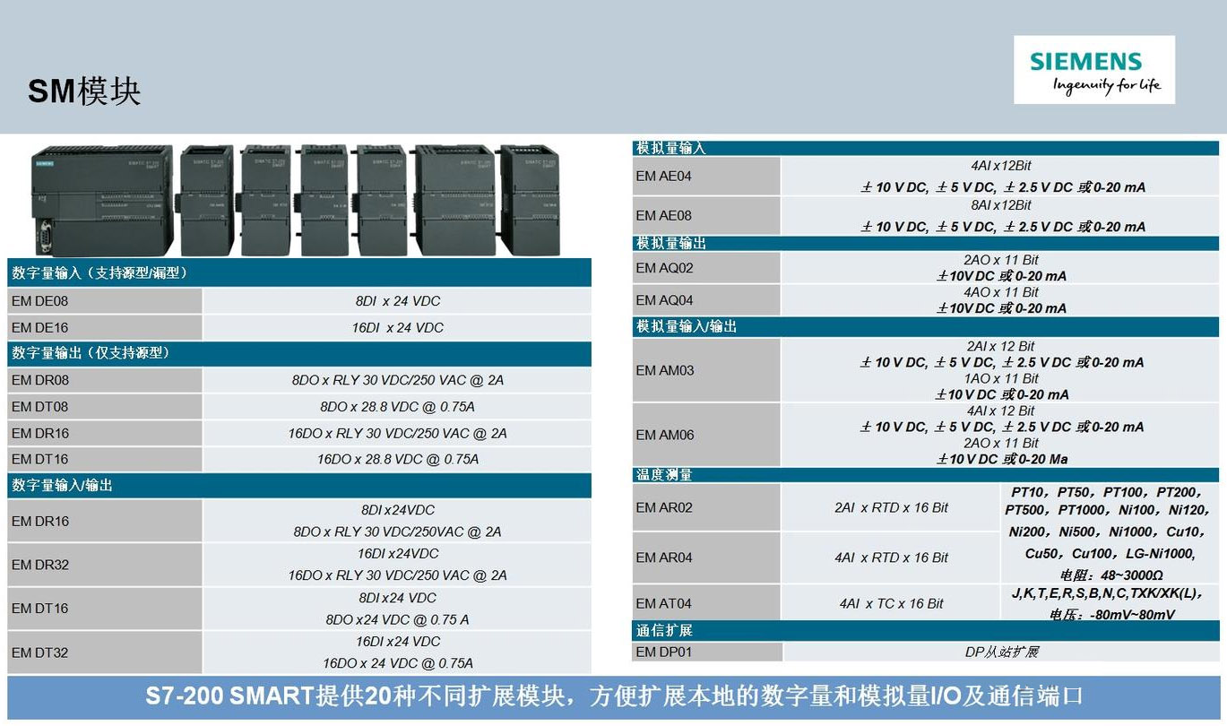 S7-200 SMART提供20种不同扩展模块,方便扩展本地的数字量和模拟量I/O及通信端口