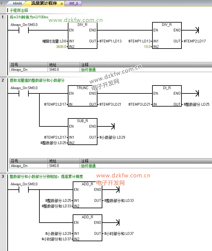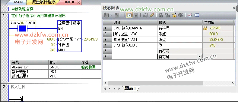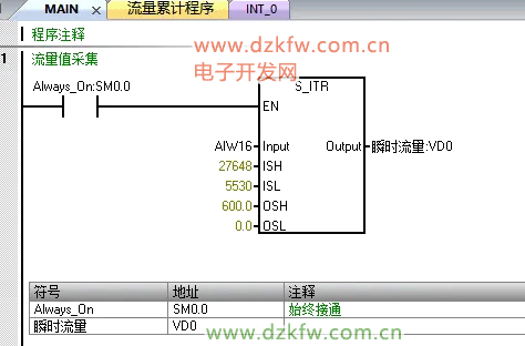 西门子S7-200smart通过瞬时流量来计算累计流量的一种方法 中断IN_T0