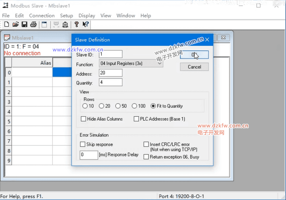 下面用Modbus Slave来模拟流量计,功能码是04,3x区的寄存器。从20地址也就是16H;