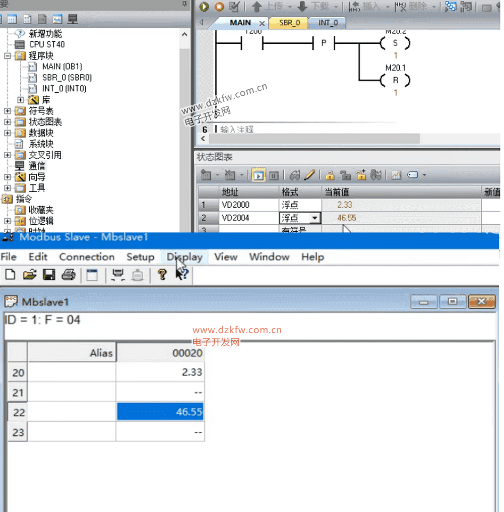 此时在Modbus Slave中写入模拟数据,在PLC中就可以监控到数据了。