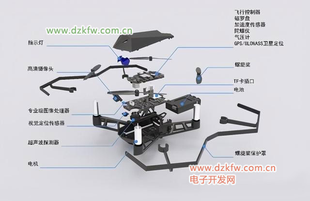 3. GPS指南针模块:包含GPS模块和指南针模块,用于精确确定飞行器的方向及经纬度。