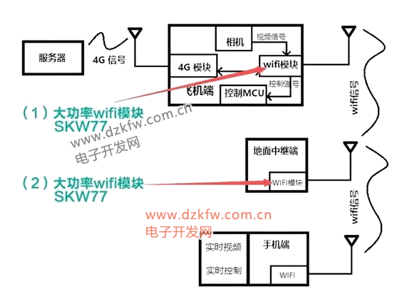 3. 图传:将无人机在空中拍摄的画面实时稳定地发射给地面图传遥控接收显示端上,供操控者观看。无人机图传系统,就是采用适当的视频压缩技术、信号处理技术、信道编码技术及调制解调技术,将现场无人机所搭载的摄像机拍摄到的视频以无线方式实时传送到远距离后方的一种无线电子传输设备。