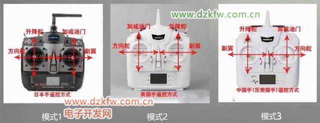 遥控器还有一个美国手、日本手之说。美国手与日本手是指无人机的操控方式,美国手是左手油门,日本手是右手油门,对应不同的操控器油门方向杆的不同布局。