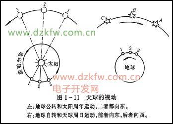 另一种是由于地球公转,表现为相对于恒星的运动,方向向东,每年巡天一周。