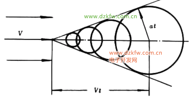 论文中指出,当空气中的物体运动时所形成的以声速c传播的球面扰动波,而物体速度v大于c时,波形前方会形成以物体为顶点的锥形包络面。