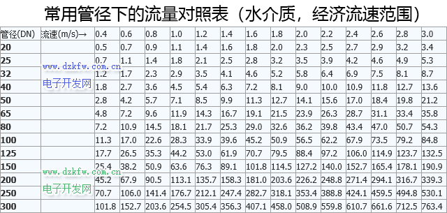 - DN20~DN300:0.5~2.9m/s(随管径增大而略增)