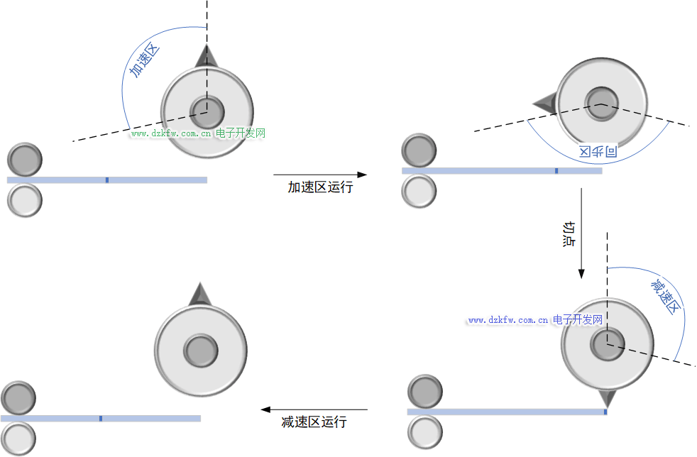 减速区:飞减加速距离:dyDec,牵引轴运行距离:dxAcc,