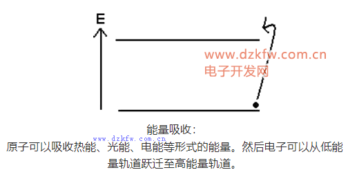 原子可以吸收热能、光能、电能等形式的能量。然后电子可以从低能量轨道跃迁至高能量轨道。