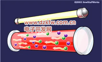 电子跃迁至更高能轨道后,最终仍要回到基态。在此过程中,电子以光子(一种光线粒子)的形式释放能量。您会发现,原子不断地以光子形式释出能量。例如,烤箱中的加热元件变成亮红色,其中的红色就是由于原子受热激发而释放的红色光子。观看电视屏幕上的图像时,您看到的其实是磷原子受高速电子激发所释放的各种不同颜色的光线。任何发光物体,包括荧光灯、煤气灯、白炽灯,都是通过改变电子轨道并释放光子来发光的。