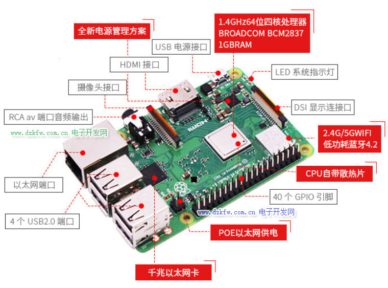Cortex架构也分三个系列性能从低到高:M、R、A。 Cortex-M定位是中低端市场,也就是我们的单片机,也叫微控制器,我们最常用的STM32F103就是Cortex-M3的内核。 Cortex-R定位高端实时系统,比如说医疗、工业、汽车、基带等等领域。 Cortex-A定位是通用市场,典型的就是平板电脑、手机、数字电视、机顶盒、服务器、打印机等领域。 3.树莓派树莓派和Arduino有点像,不是某个芯片,而是一个集成的电路板。
