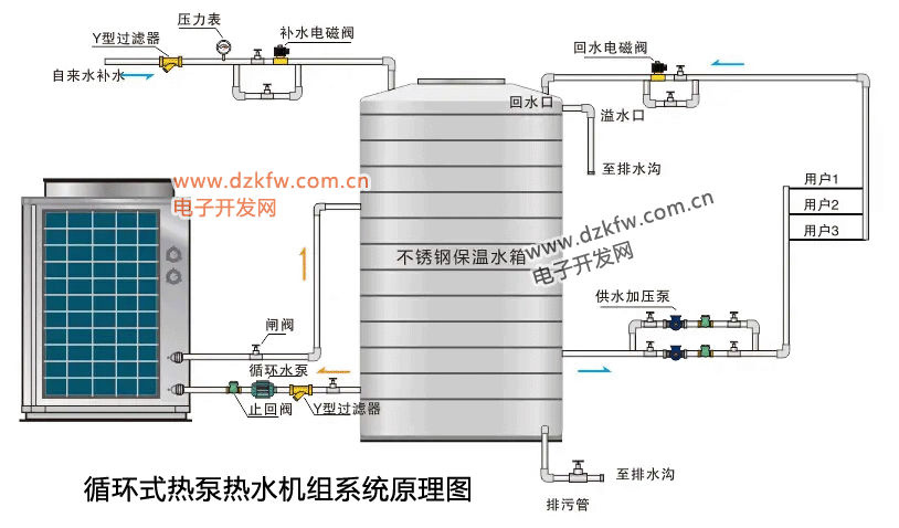 6.适合各类团体热水工程使用,可实现无人值守,全自动运行,集中供应热水配有水温、水位显示。