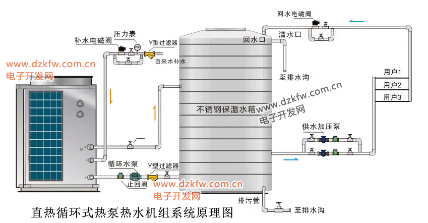 空气能热水器是采用逆卡诺原理(与空调相反的原理),从低温空气中吸收热量,并把热量转移到高温的水中,实现加热的过程。具体流程如下: